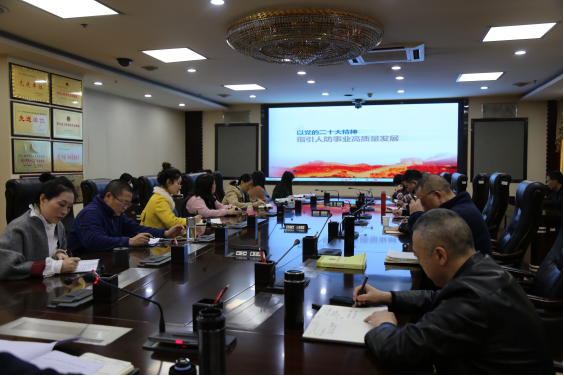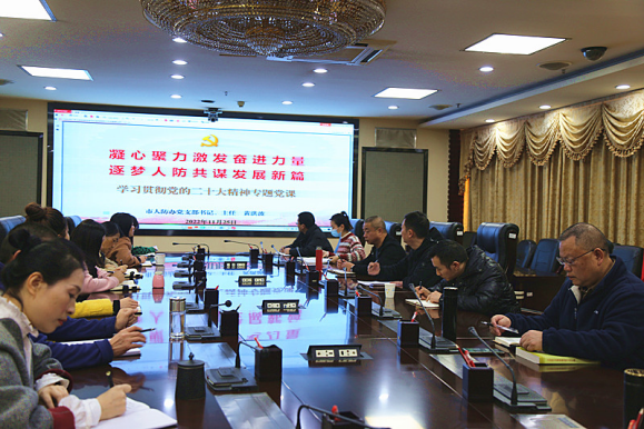 为深入学习宣传贯彻党的二十大精神,2022年11月25日,遂宁市人防办党支部组织召开党员及干部职工大会,党支部书记黄洪波以“凝心聚力激发奋进力量,逐梦人防共谋发展新篇”为题,以党的二十大报告要点为主线,重点对党的二十大精神的丰富内涵和核心要义等方面进行了详细解读,并结合人防工作实际,为全体党员及干部职工上了一堂生动而深刻的专题党课。