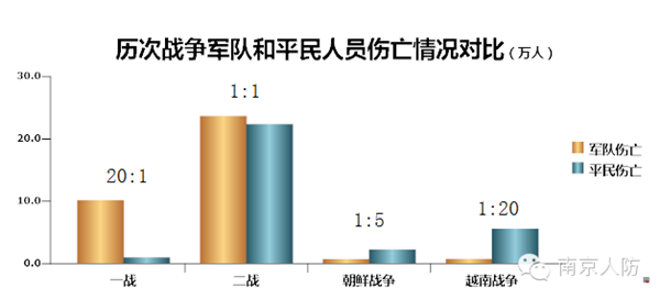 20 世纪注定是不平静的时代,战争在一战后几十年再次爆发,此次世界范围内的大交锋给世界人民带来了无法估量的损失和伤害。与一战相比,无论是军人还是平民,死亡总数都显著上升。由于战略轰炸成为二战的重要方式,平民的死伤比例也大大的高于一战。