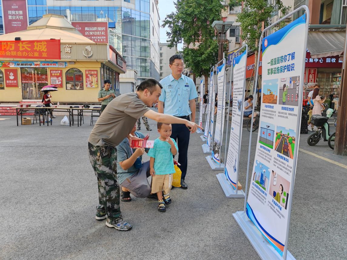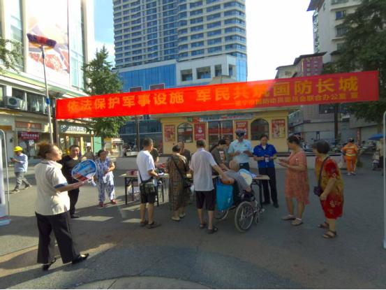8月1日,在中央商务区百福广场,军地联合宣传组联合城管执法部门设立普法咨询台,向居民发放军事设施保护相关法律法规图解手册、国防动员教育宣传单等资料1000余份,向群众讲述军事设施对国家安全的重要性,帮助群众直观理解“保护范围”和“禁止行为”。针对社区群众关心的“民用建设是否影响军事安全”“发现可疑行为如何举报”等问题,工作人员耐心解答。大东街社区居民李大爷感慨:“以前觉得军事设施离我们很远,今天才知道家门口的基站也可能涉及国防安全,保护军事设施人人有责!”