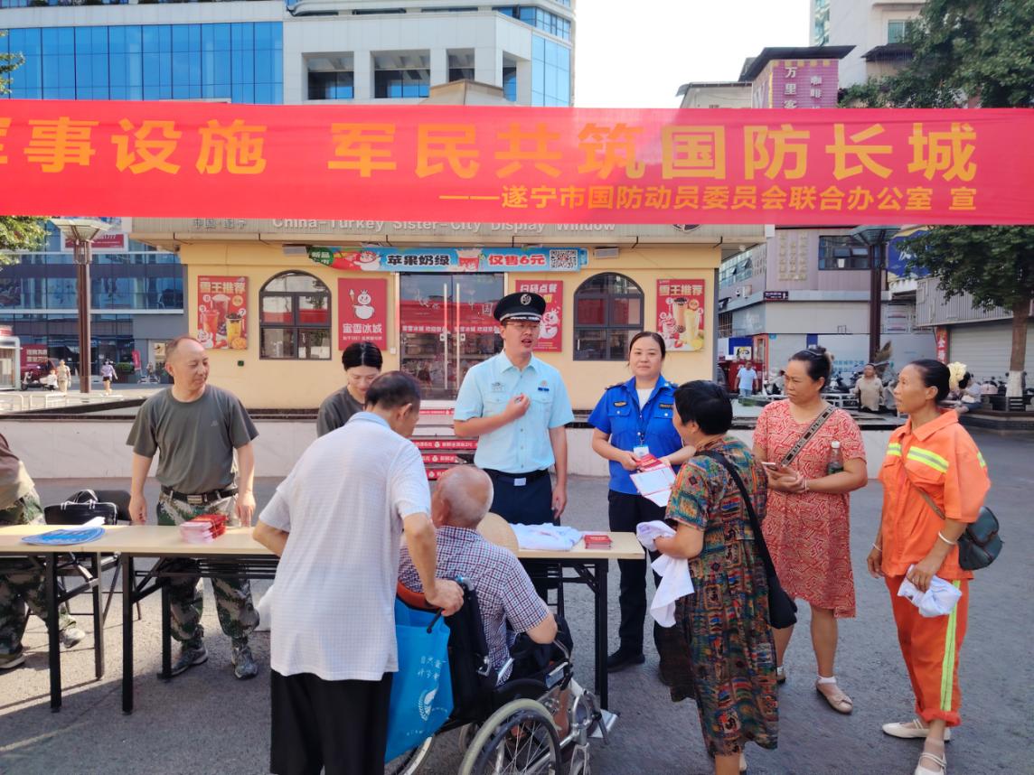 在《四川省军事设施保护条例》(以下简称《条例》)正式施行之际,为深入贯彻落实习近平总书记关于国防动员和军队建设的重要指示精神,进一步增强全民国防动员观念和军事设施保护意识,遂宁市以庆祝中国人民解放军建军98周年为契机,市国动办、遂宁军分区动员处牵头组织开展了“军事设施保护宣贯进部队、进社区”等系列活动,通过军地联动、军民共建的形式,推动《条例》宣传走深走实,为筑牢国防安全屏障营造了良好氛围。