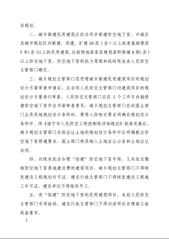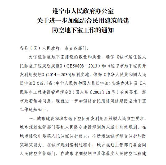 遂宁市人民政府办公室关于进一步加强结合民用建筑修建防空地下室工作的通知