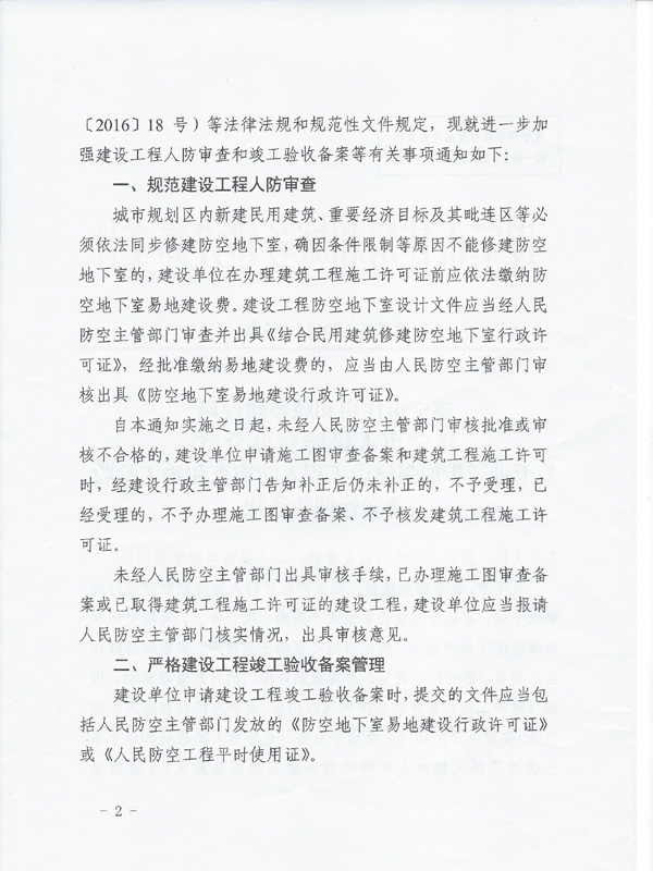 关于进一步加强建设工程人防审查和竣工验收备案管理的通知