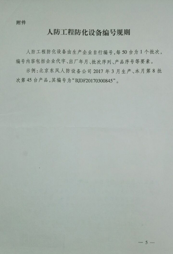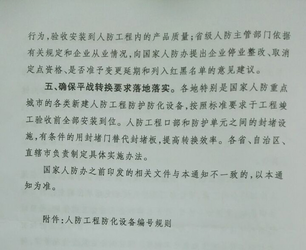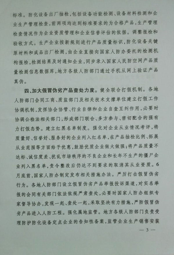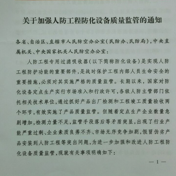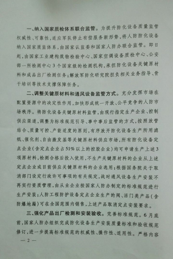 关于加强人防防化设备质量监管的通知国人防〔2017〕57号