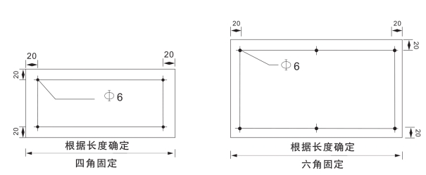 图1 四孔固定安装示意图 图2 六孔固定安装示意图