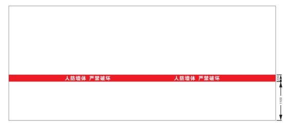 3.10 人防墙体应涂刷人防墙体标识。人防墙体标识由色带及提示语“人防墙体 严禁破坏”组成,标识样式及尺寸示例见图9。提示语字体应为国标黑体,高度宜为140 mm,颜色应为白色,提示语字样间隔 12~16 m。