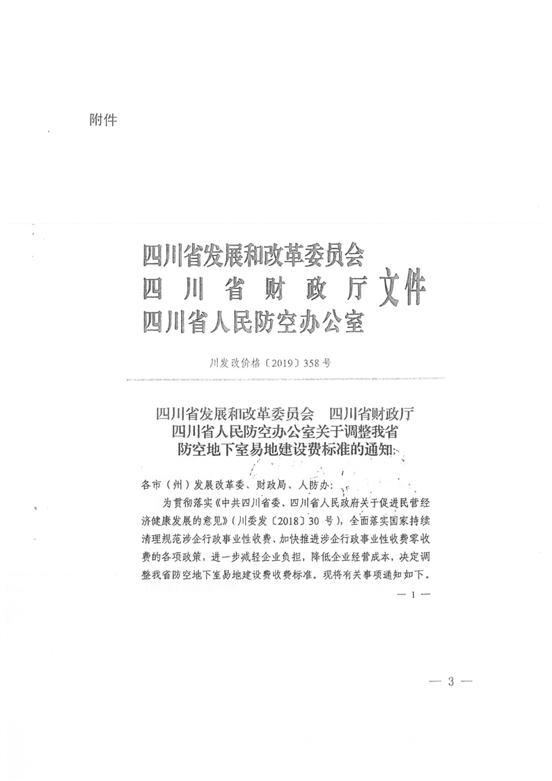 转发省级部门关于调整防空地下室易地建设费标准的通知