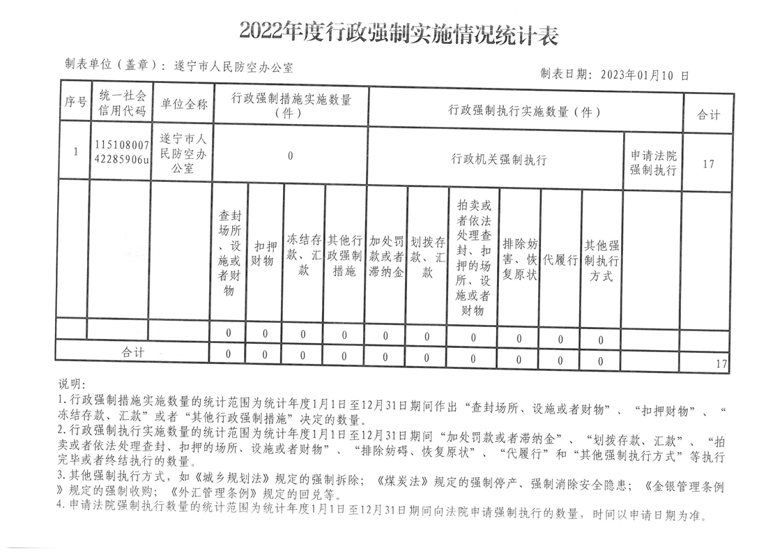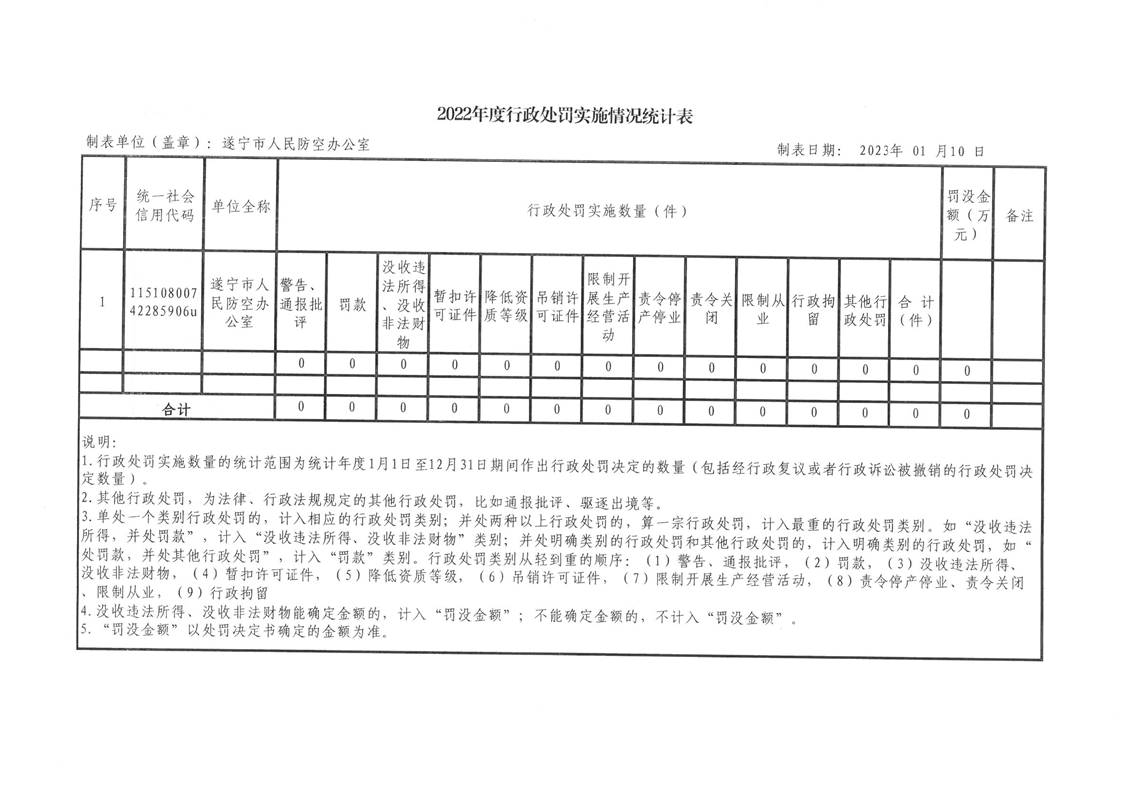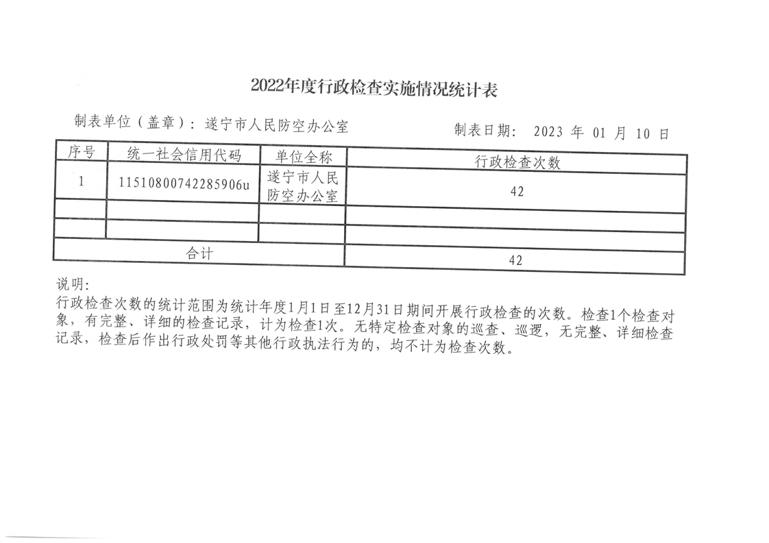 遂宁市人民防空办公室2022年度行政执法和行政执法监督工作